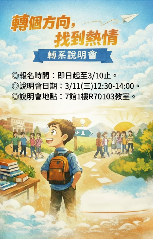📌 說明會內容包含: ✔ 轉系申請資格與條件 ✔ 申請流程與重要時程 ✔ 常見 Q&A 一次解答