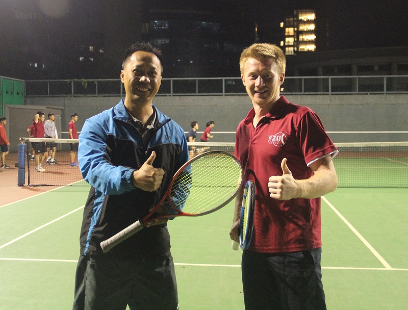 體育室林青輝主任(左) 、元智管院外籍生康福迪(右) 。圖/元智大學提供