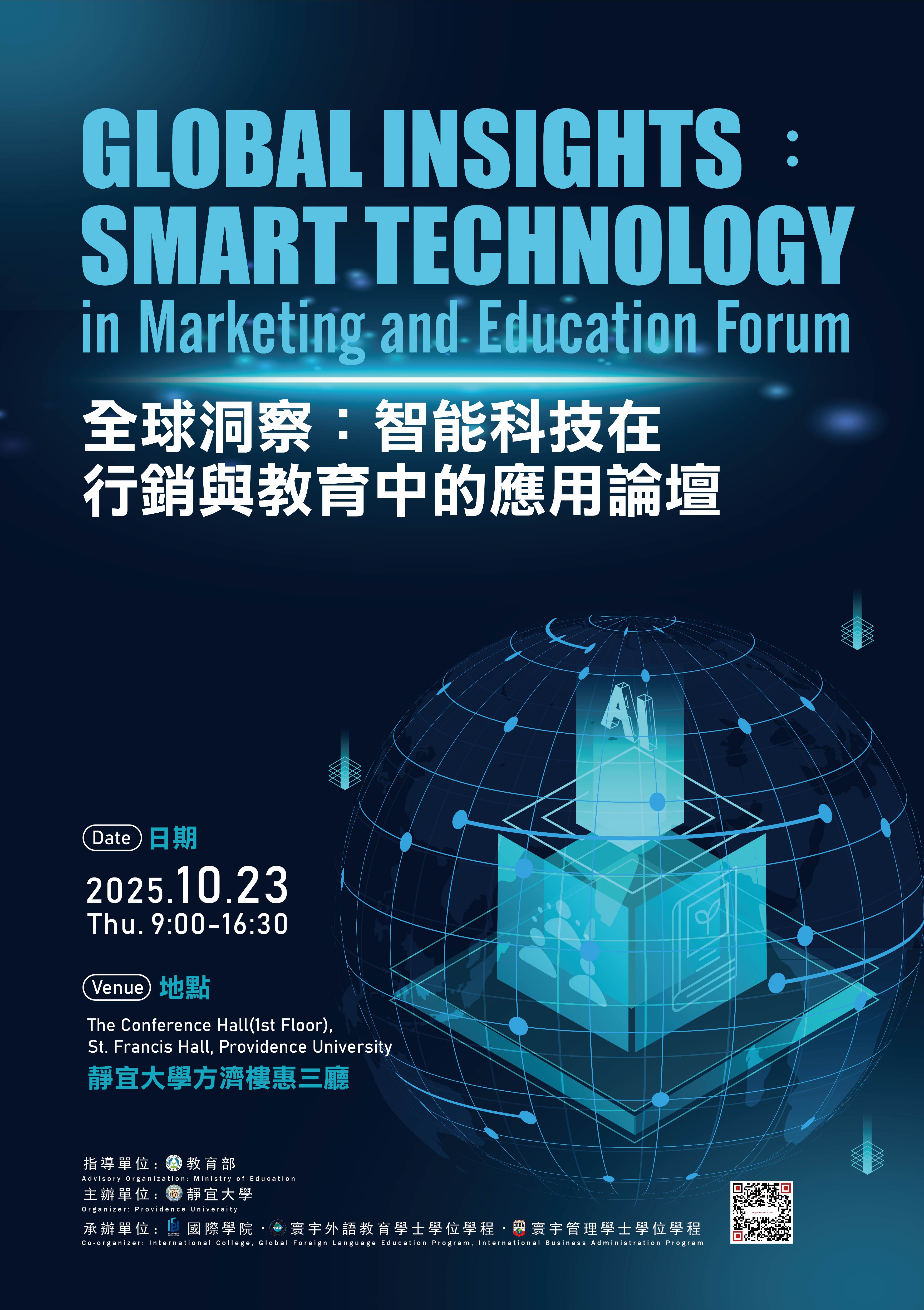檢送本校國際學院辦理「全球洞察:智能科技在行銷與教育中的應用論壇」,敬請惠予轉知並鼓勵貴校師生踴躍報名參加,請查照。