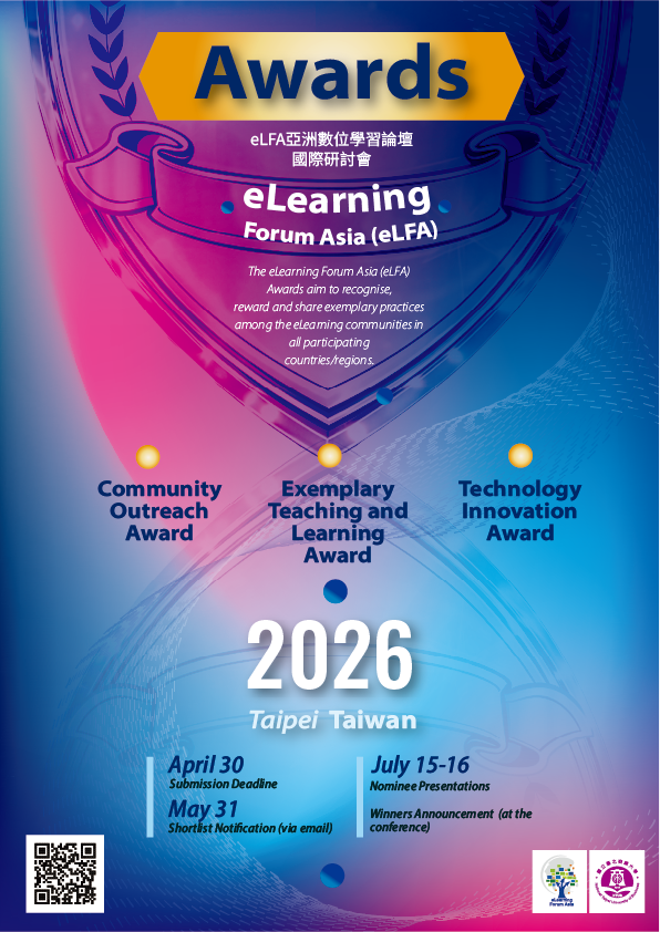 主旨:本校辦理「eLearning Forum Asia 2026國際研討會」,請惠予公告並鼓勵貴校師生踴躍賜稿。