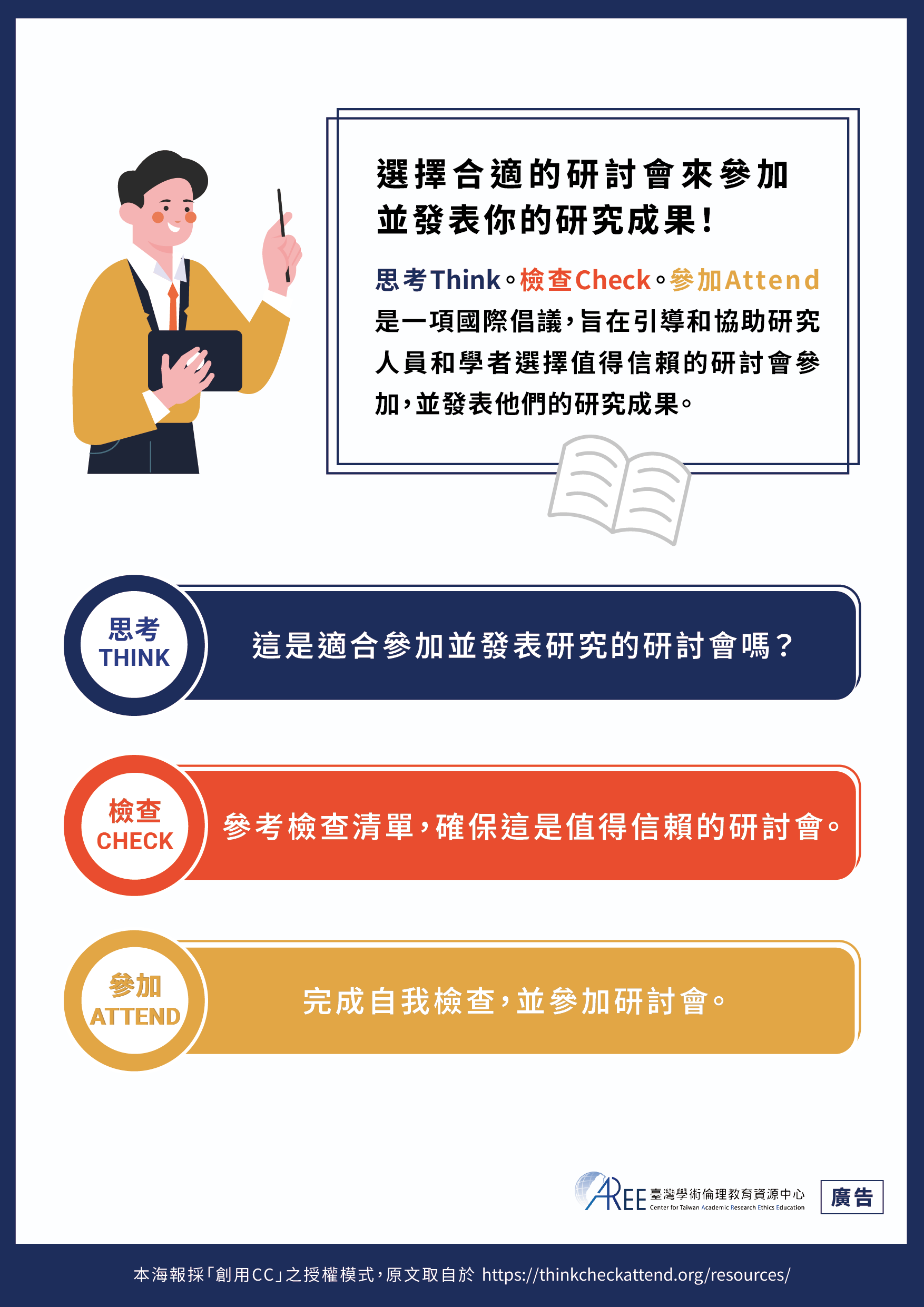 臺灣學術倫理教育資源中心就「掠奪性期刊與會議」編制一系列教材,除了線上課程,另有議題教材包、文宣海報、學倫小知識等相關資源,歡迎多加利用!