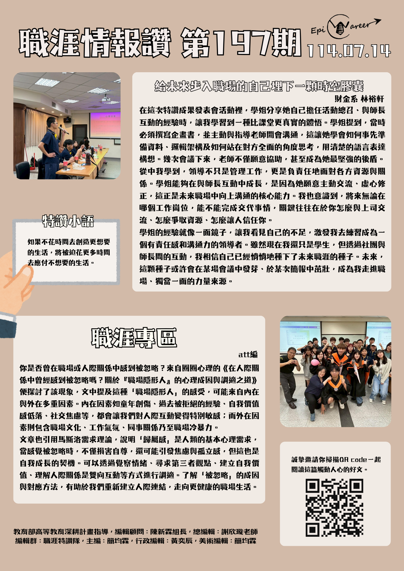 職涯情報讚197期1140714發行-給未來步入職場的自己埋下一顆時空膠囊