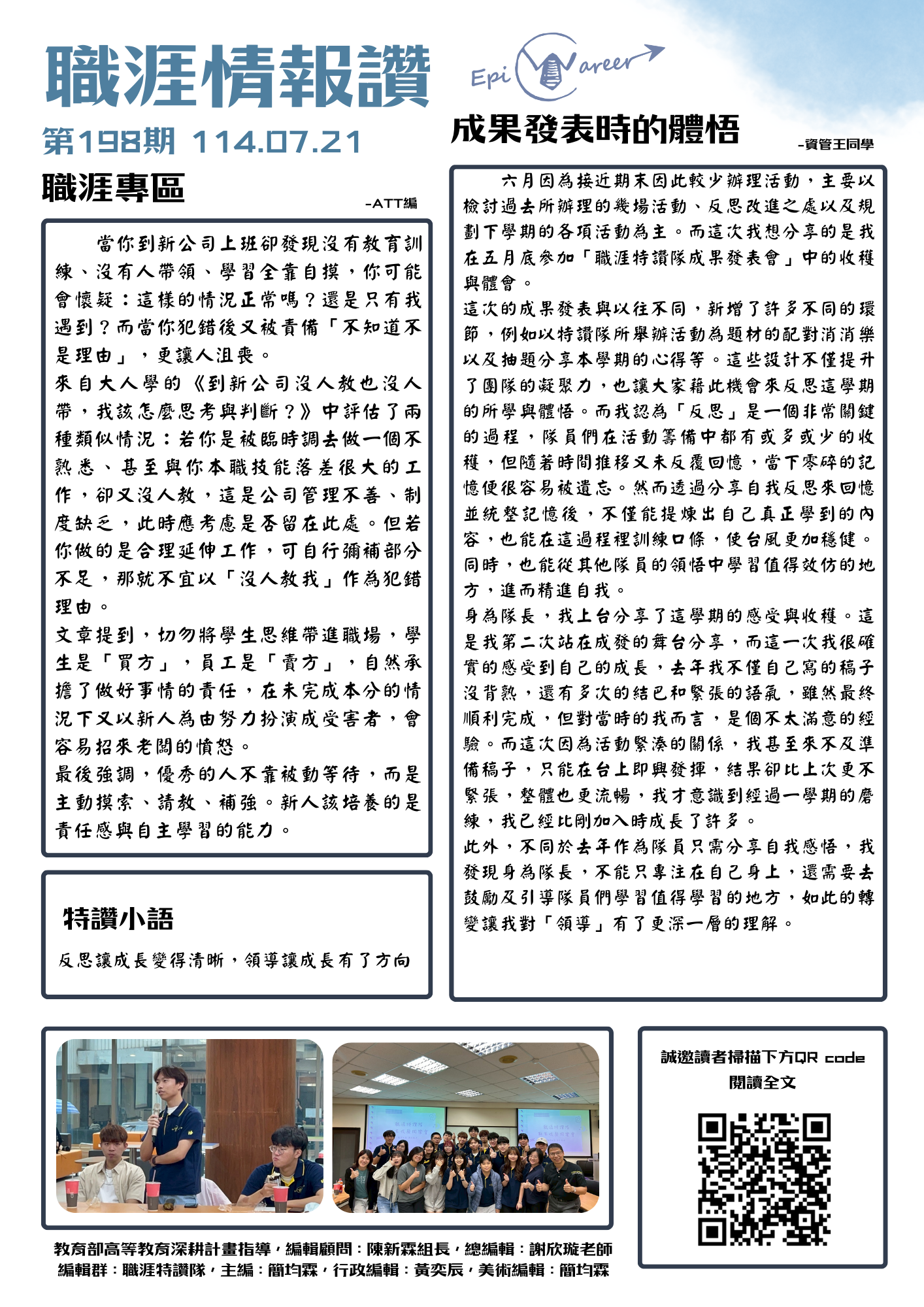 職涯情報讚185期1140421發行-加入職涯特讚隊後,執勤收穫與啟發