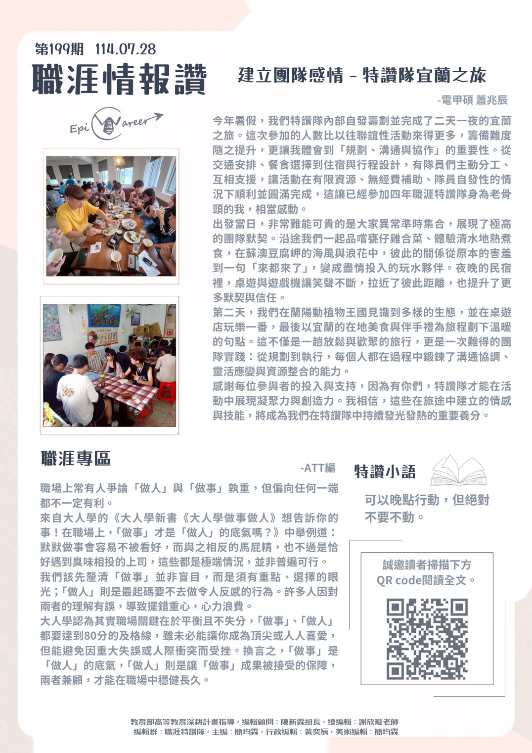 職涯情報讚199期1140728發行-電機碩蕭同學-建立團隊感情,特讚宜蘭之旅
