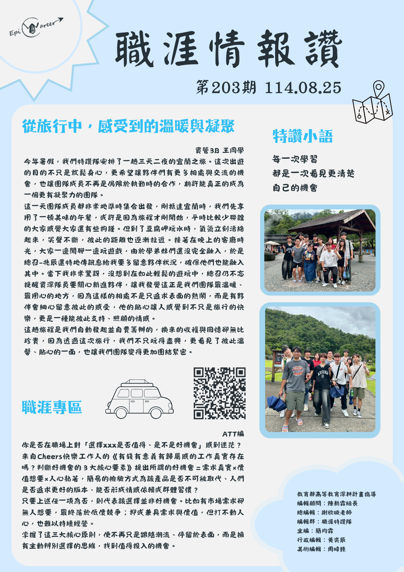 職涯情報讚203期1140825發行-資管3B王同學-從旅行中感受到的溫暖與凝聚