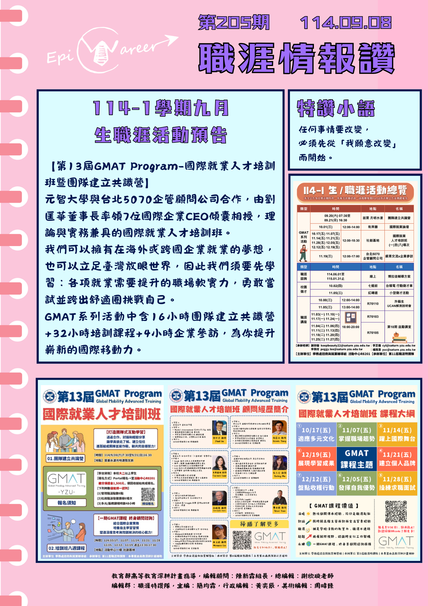 職涯情報讚205期1140908發行-1141九月生職涯活動預告