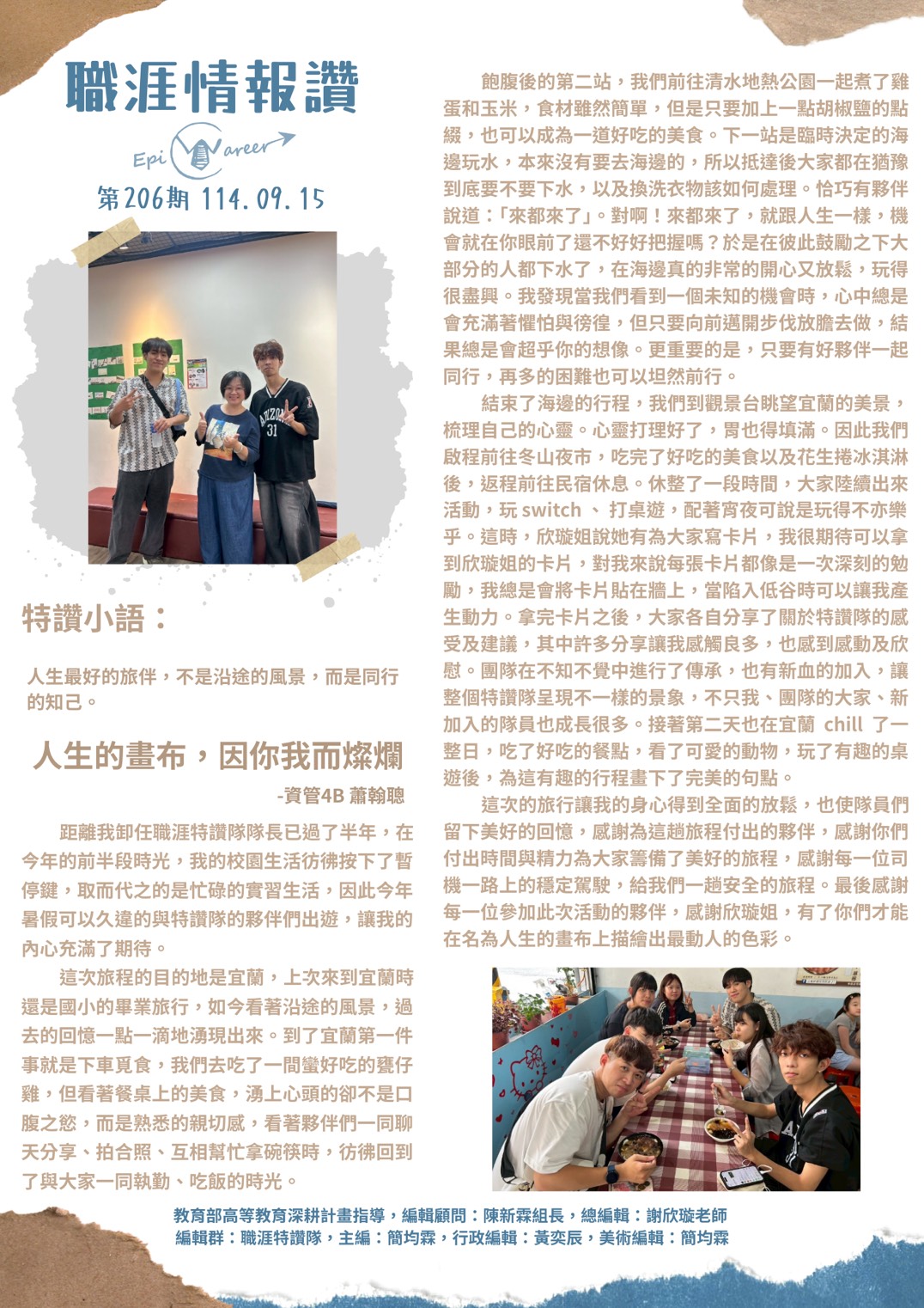 職涯情報讚206期1140915發行-資管系蕭同學-人生的畫布,因你我而燦爛