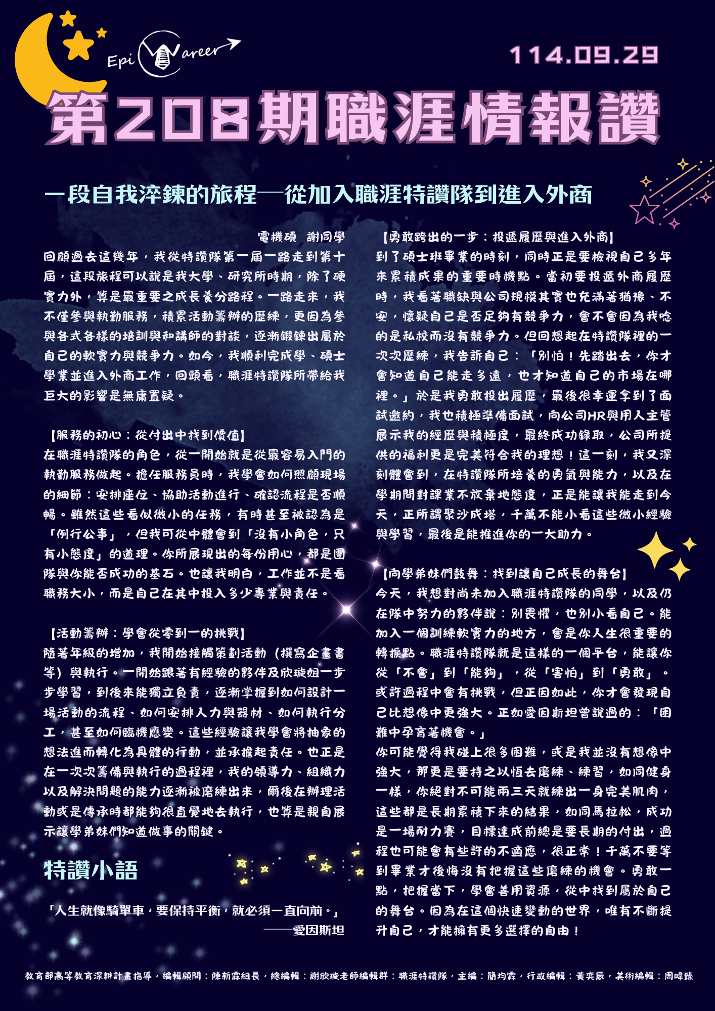 職涯情報讚208期1140929發行-電機系謝同學-一段自我淬鍊的旅程
