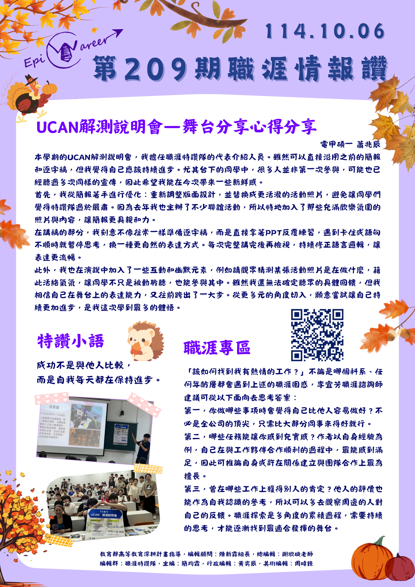 職涯情報讚209期1141006發行-UCAN解測說明會-心得分享