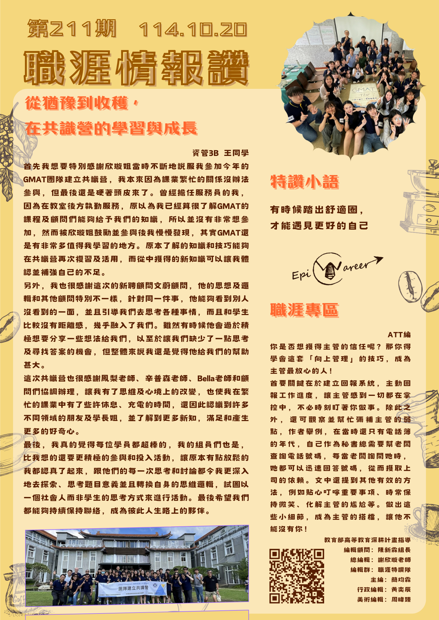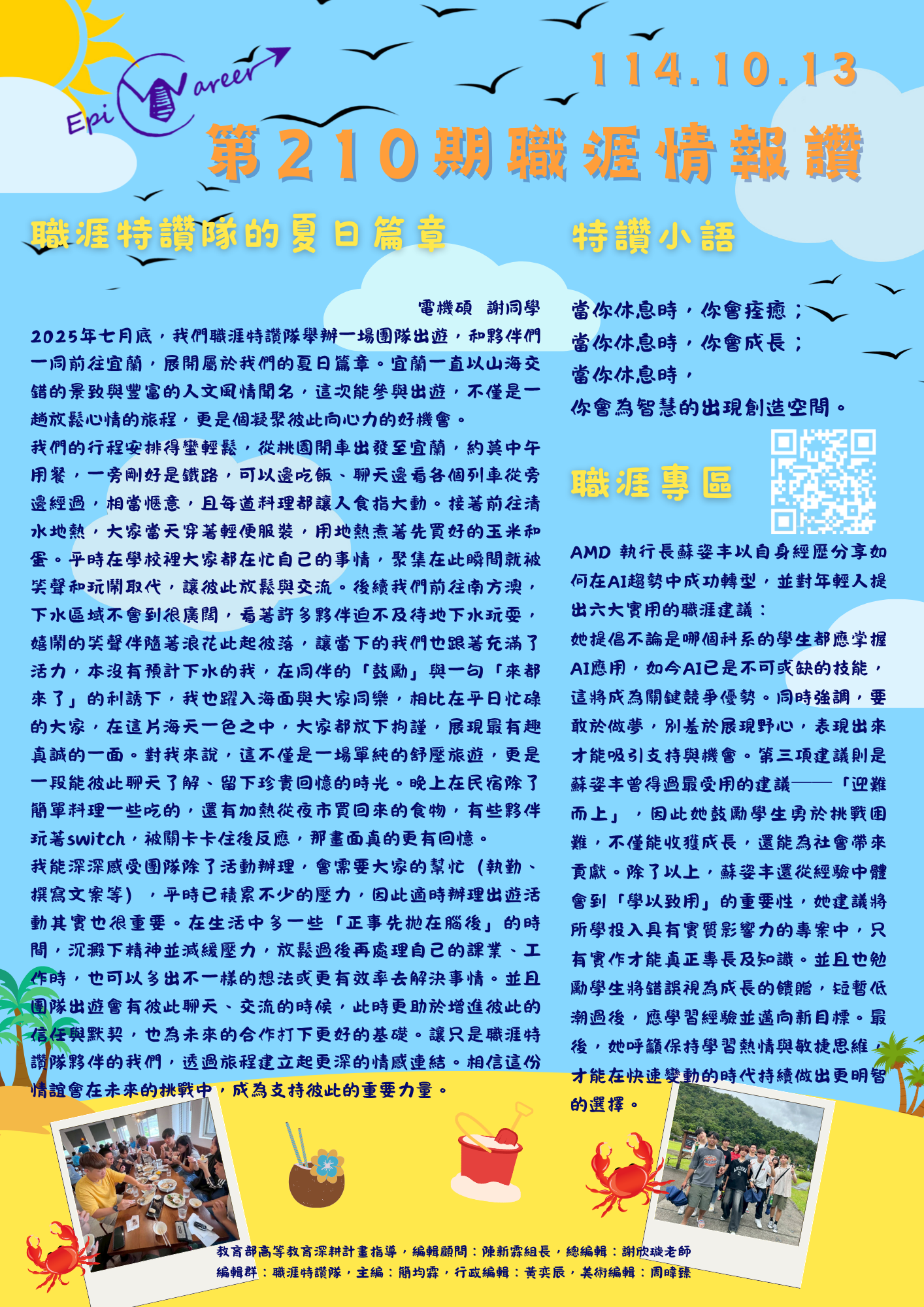 職涯情報讚210期1141013發行-電機系謝同學-職涯特讚隊的夏日篇章
