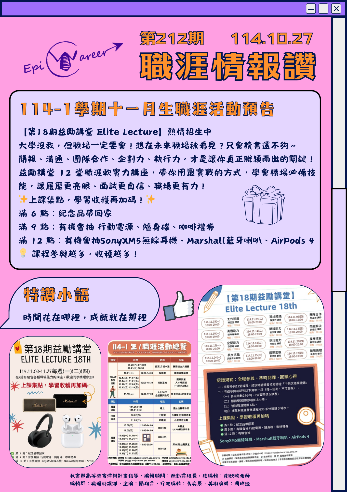 職涯情報讚212期1141027發行-114-1學期 十一月生職涯活動預告