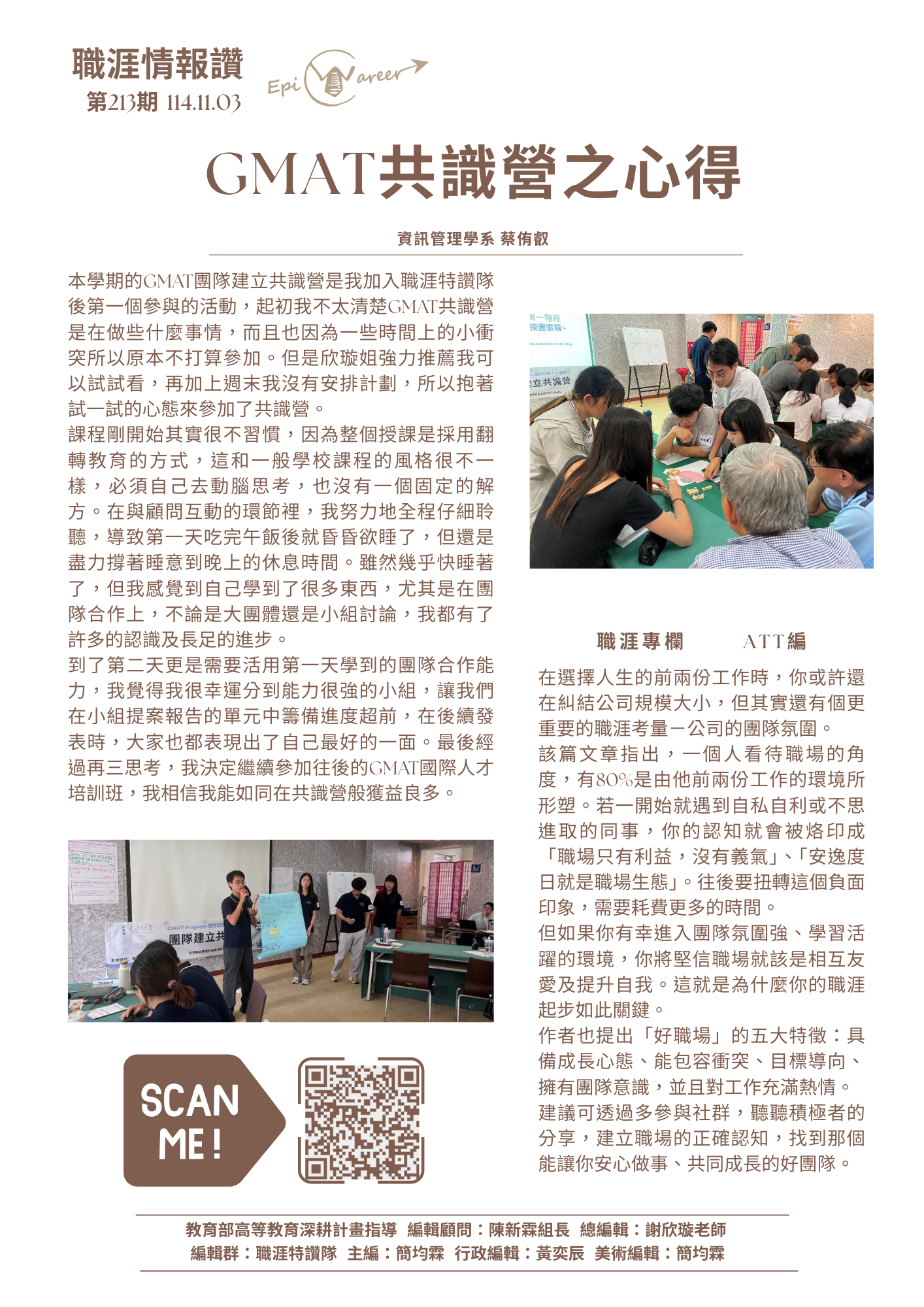 職涯情報讚213期1141103發行-資管系蔡同學-GMAT共識營之心得