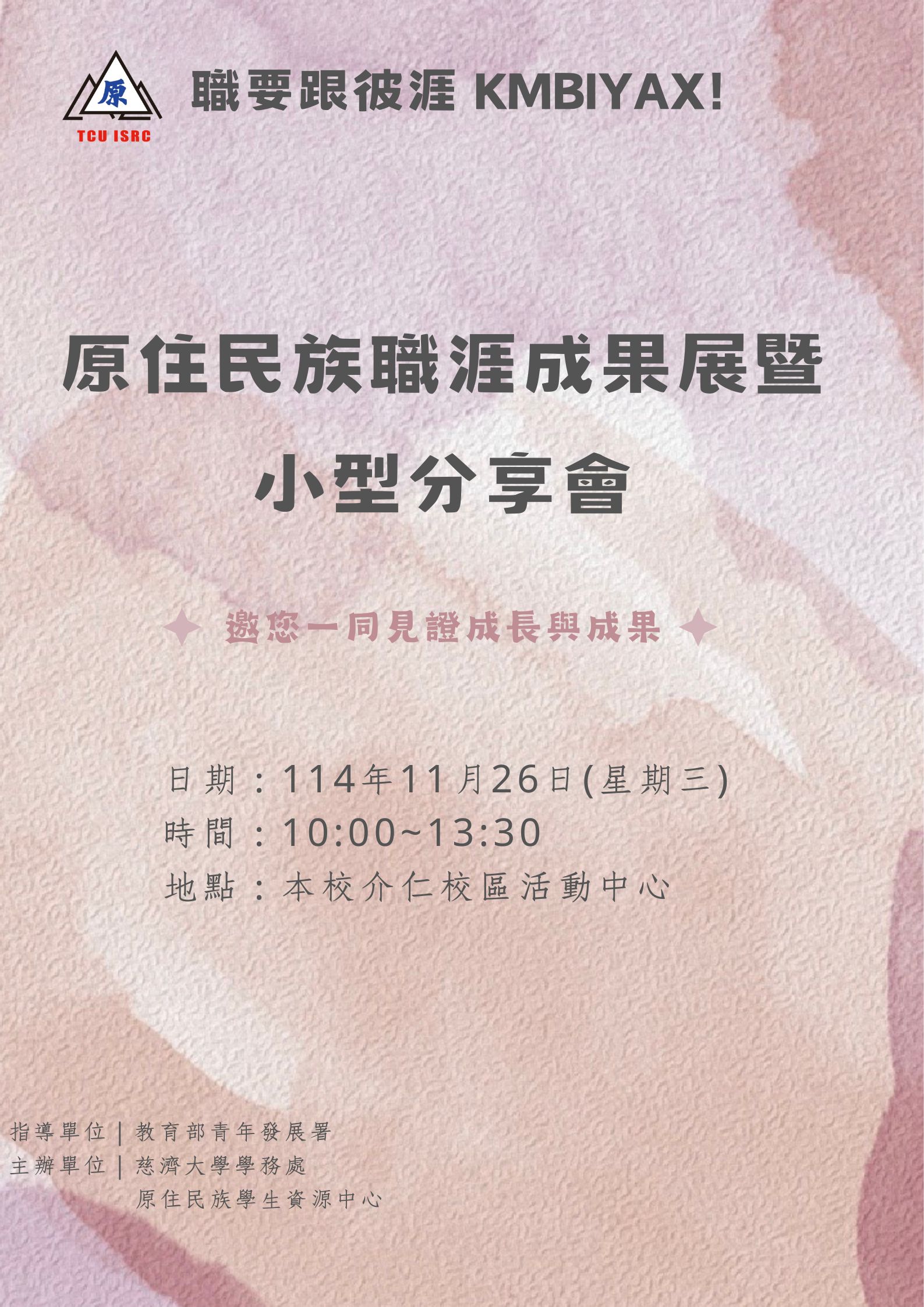 五、聯絡方式:原住民族學生資源中心-曾彥喆專案助理,電話:(02)82122000#6071