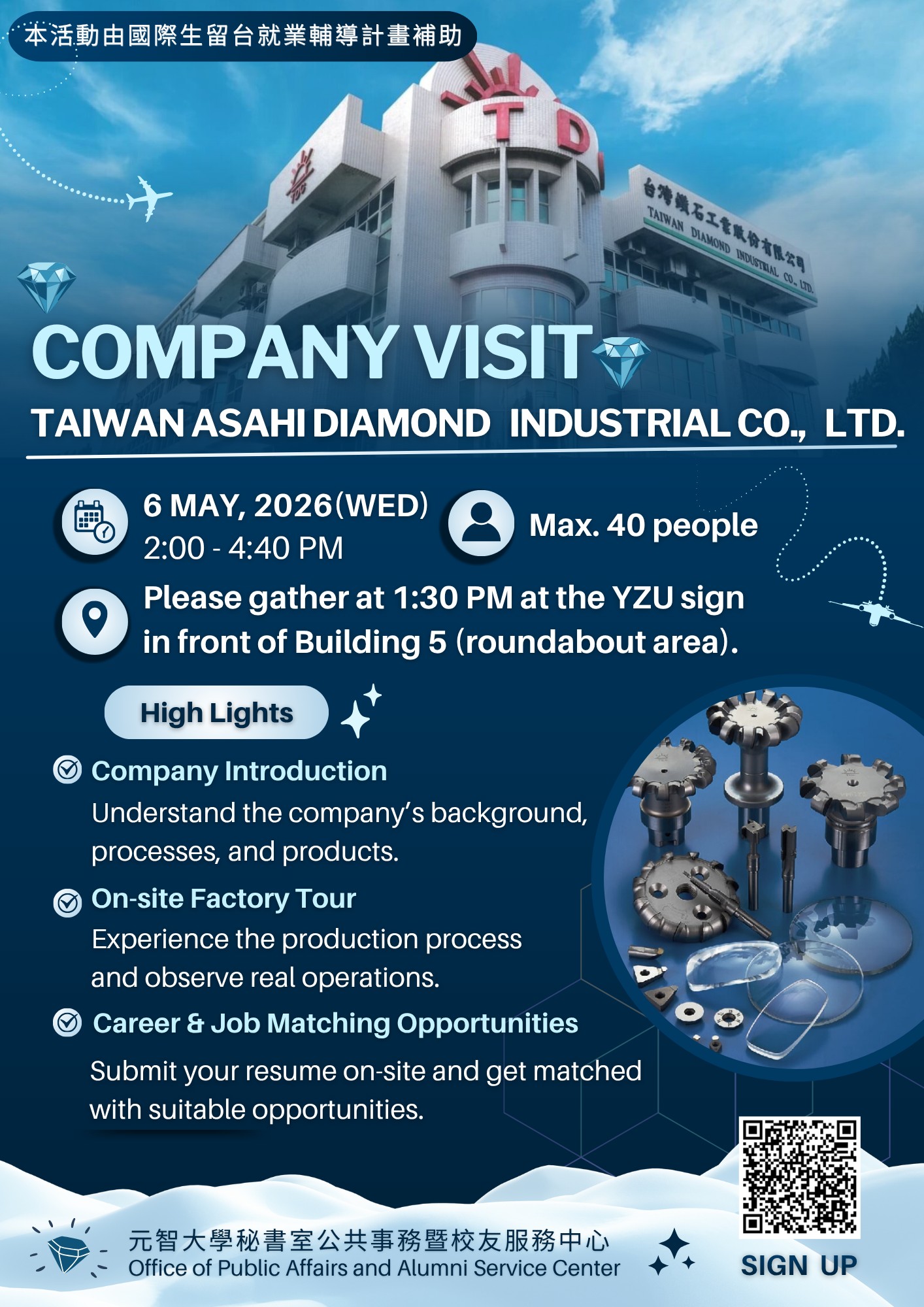 Join us for an exclusive visit to Taiwan Asahi Diamond Industrial Co., Ltd. and gain first-hand insights into Taiwan’s manufacturing industry while exploring exciting career opportunities.