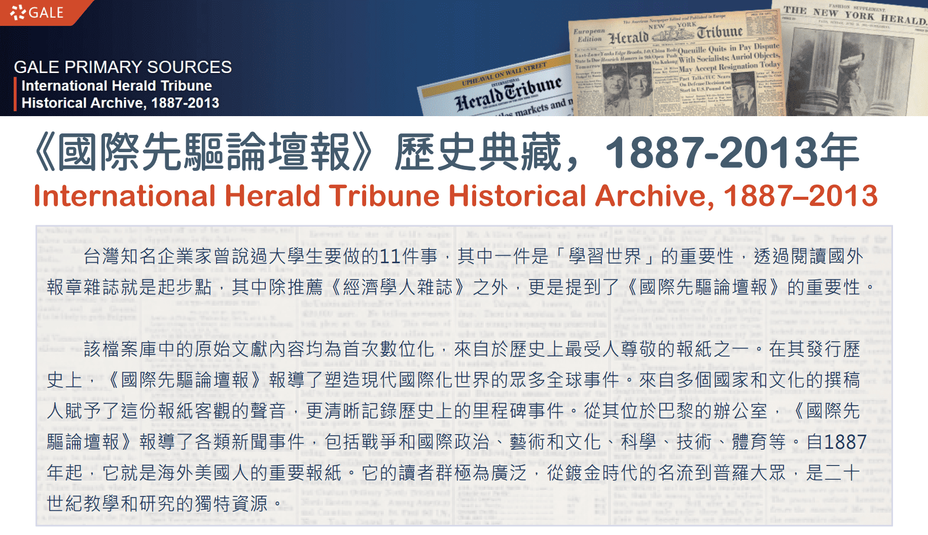 Digitised for the first time, this archive contains primary source content from one of history’s most-revered newspapers. During its run, the International Herald Tribune covered global events that shaped the modern international world. Contributions from various countries and cultures gave this paper an objective voice and allowed for clearer coverage of historical milestones. From its base in Paris, the International Herald Tribune reported on a diverse range of stories, covering wars and international politics, arts and culture, science, technology, and sports. Since 1887, this has been the paper of record for the American abroad. With a diverse audience ranging from Gilded Age jet-setters to GIs, this is a unique resource for teaching and researching the long twentieth century.