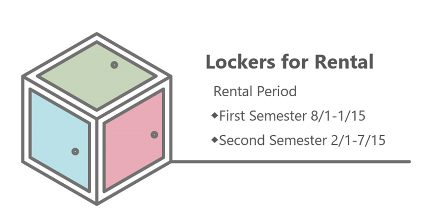 - Locker rental (including renewal) for the next semester is available from 06/09. Please visit the counter with your student card.