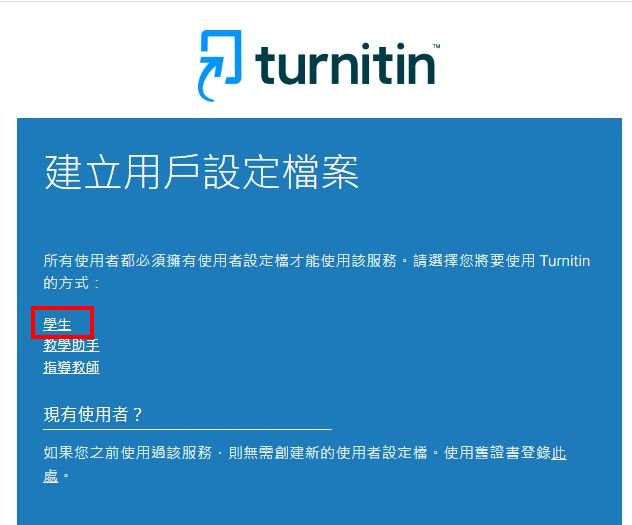 請到Turnitin系統,點選建立帳號(Create Account)以元智大學的電子郵件信箱進行註冊,完成註冊立即使用。